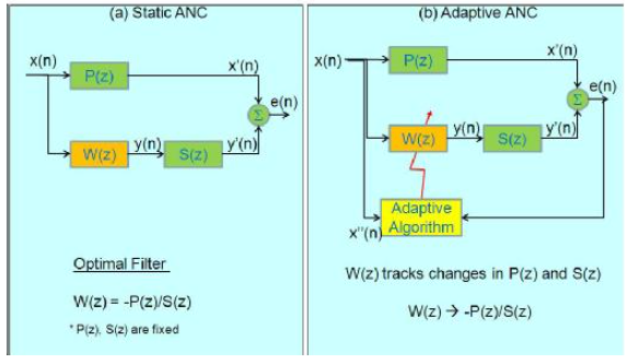 一般耳机的ANC场景是不固定的。耳机的主要和次要声学路径根据耳机装置的位置和装置与耳朵之间的压力而变化。AANC加入了一种附加的自适应算法,接收噪声输入信号和误差信号,并根据一次和二次路径的变化计算最优滤波值。传统的FF-ANC只需要输入信号,而自适应算法也需要误差信号。这种自适应抗噪声信号为噪声消除提供了更好的用户体验。