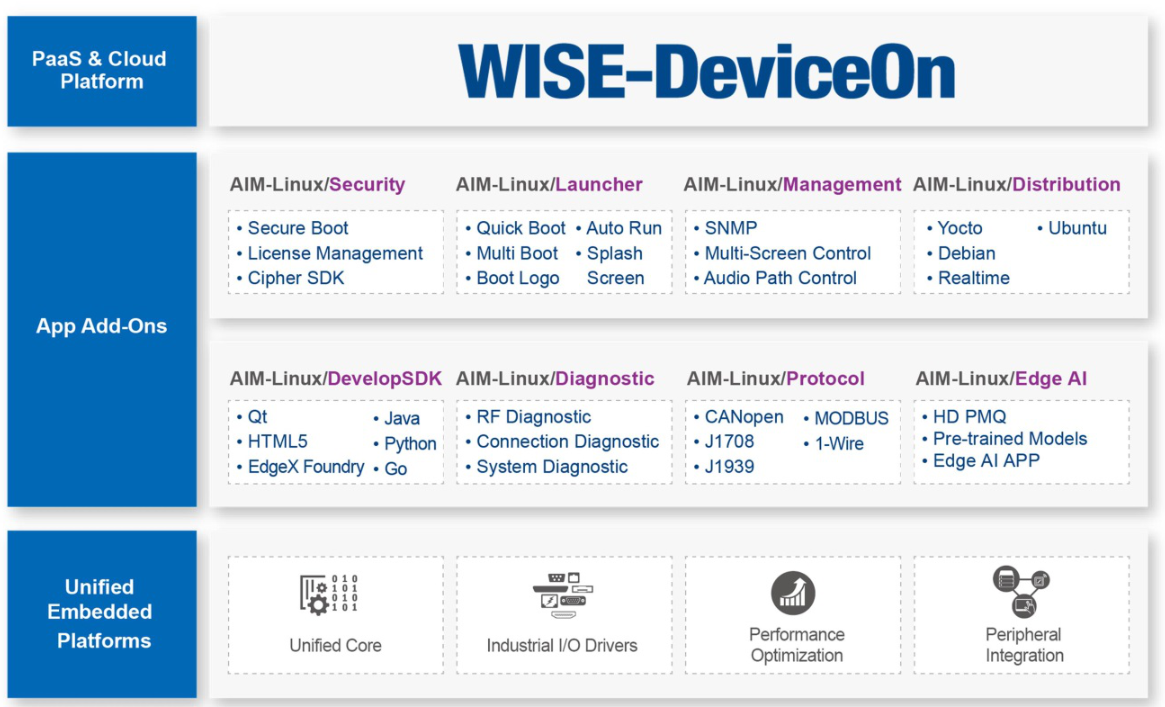 用于远程设备控制和管理的增值AIM-Linux + WISE-DeviceOn服务