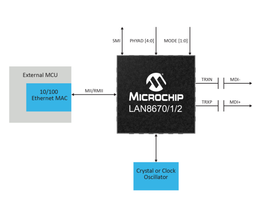 LAN867x扩展了Microchip面向工业应用的产品阵容和整体系统解决方案,包括MCU、MPU、带以太网接口的交换机、开发工具、评估板和支持。