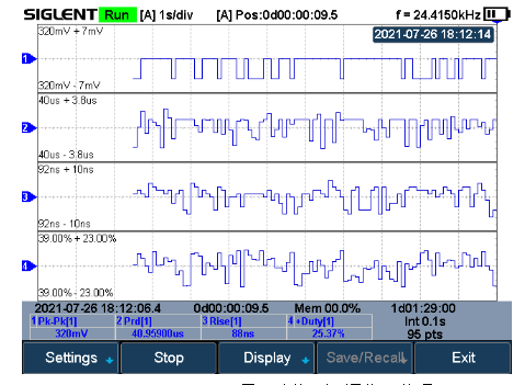 图2。高刷新率配合色温和余辉显示可以快速捕捉异常信号