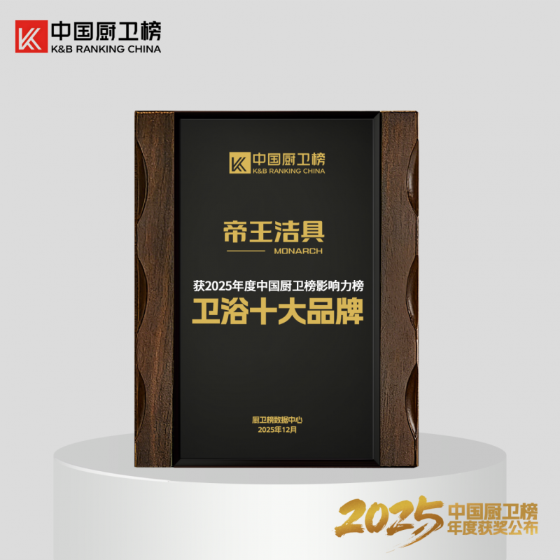 近日,“2025中国厨卫榜”榜单正式发布。帝王洁具凭借其深厚的品牌积淀、持续的创新动力与出色的产品表现,一举荣获“卫浴十大品牌”、“年度消费者喜爱品牌”、“十大创新卫浴品牌”、“智能卫浴十大品牌”、“浴室柜十大品牌”五项重磅大奖,成为本届榜单中备受瞩目的焦点。