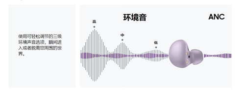 强大的主动降噪功能,承载着耳机用户的热切需求,如今已经是三星Galaxy Buds家族的基本操作。三星Galaxy Buds2此次搭载的ANC主动降噪功能还有助于屏蔽不需要的外部背景噪音。在降噪的同时,为了不耽误用户与外界交流,三星Galaxy Buds2还支持环境音模式,可进行三档调节,用户依据环境变化进行设置,能够更清晰地听到周围人说话的声音。而在通话时,三星Galaxy Buds2三组麦克风和一个内置语音拾取单元可帮助您拨打声音更清晰的电话,而基于机器学习的解决方案可过滤不需要的声音,进一步降低了通话时的噪声干扰,让通话全程舒适高效。