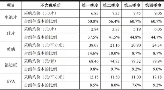 运费高位运行、高硅料价格抑制的组件需求及2021年全年低价组件的扰动、开工率不足导致的成本上行等因素。