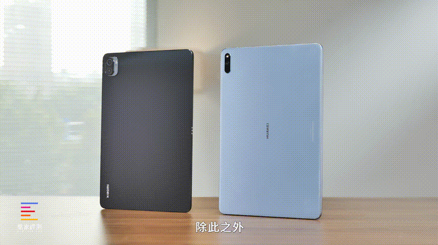 在机身背面,小米平板5Pro采用了与小米11外形相同的双摄像头镜头模组。相比只有一个摄像头的MatePad,整个镜头模组会更大。