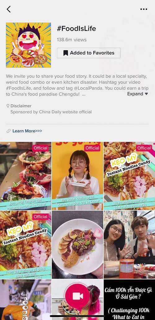 2019年5月,中国日报网TikTok平台开展亚洲美食挑战赛活动,吸引亚洲各国用户积极分享短视频。