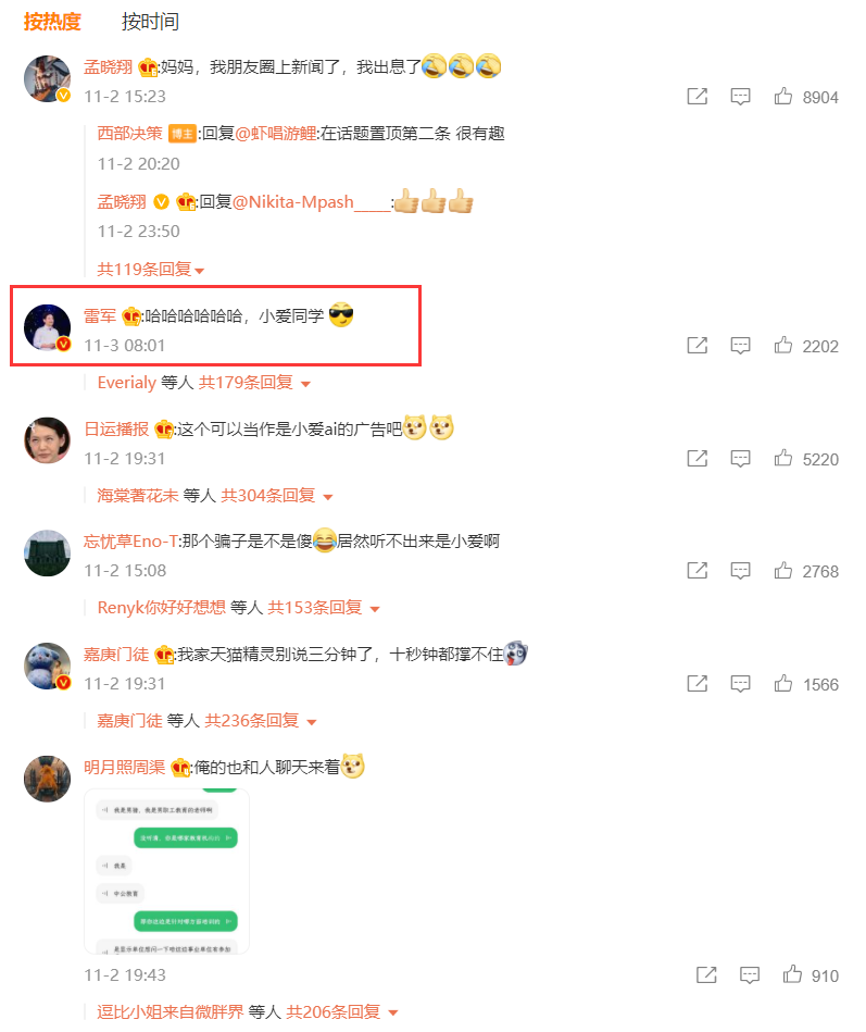 IT之家了解到,这条微博发布后在微博上引起了网友的广泛讨论,就连小米创始人、董事长兼CEO雷军也出现在评论区,对这一事件也颇感兴趣且新奇。