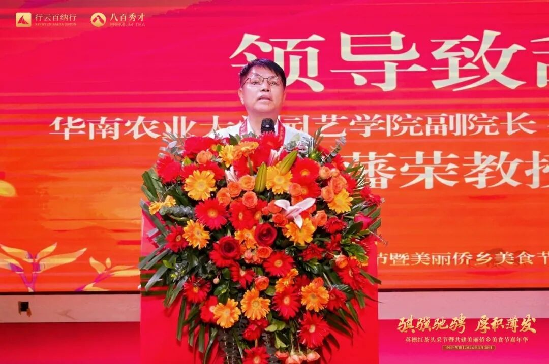 副总裁赵雄首先代表公司,向莅临现场的各位领导、嘉宾及合作伙伴致以最诚挚的欢迎与感谢。他表示,英德红茶已实现百亿产值、品牌价值全国领先,企业扎根黄陂华侨茶场,将以文化为根、科技为引擎,深化产学研合作,坚持人才兴茶、联农带农,未来持续做强品种、品质与品牌,打造侨乡茶文化窗口,与各界携手让英德红茶香飘更远,并祝愿活动圆满成功。