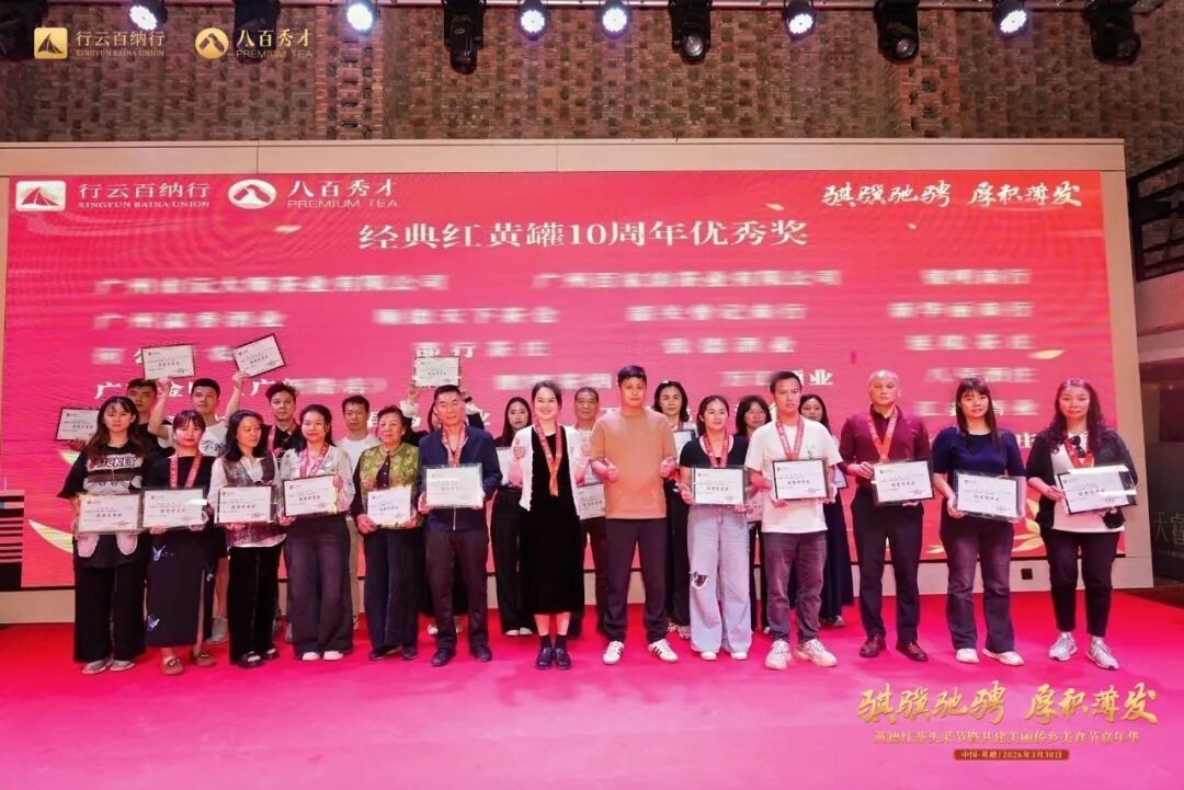 深耕茶界,感恩同行。活动特设重磅颁奖环节,为助力品牌发展、推广英德红茶产业的合作伙伴隆重颁奖。红黄罐销售 10 周年优秀奖、功勋奖,优秀经销商奖,优秀合伙人奖、卓越合伙人奖依次颁发,每一份荣誉都是对合作伙伴深耕付出的诚挚谢意。