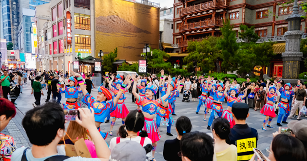 这场“电梯里的恩施展”,是恩施文旅2026年春季深耕粤港澳大湾区市场的关键一步。就在前几天,一场土苗风情的快闪狂欢已先行点燃羊城——恩施文旅快闪团队空降广州北京路步行街和永庆坊,身着绚丽土家族盛装的舞者们跳起《摆手欢歌》《土家肉连响》,欢快的歌舞回荡在骑楼之间,引得市民纷纷驻足、拍手叫好。快闪活动迅速刷爆广州人的朋友圈,“恩施”二字开始在千年商都的口中流传。